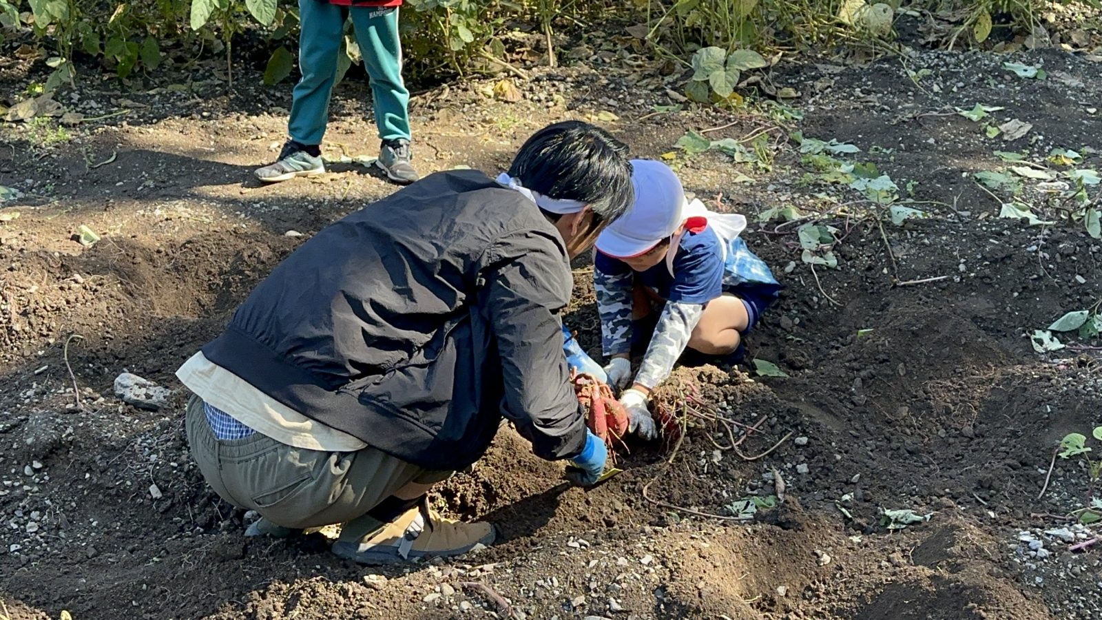 毎年恒例の芋掘りリレーは、早さとお芋の重さで競います!