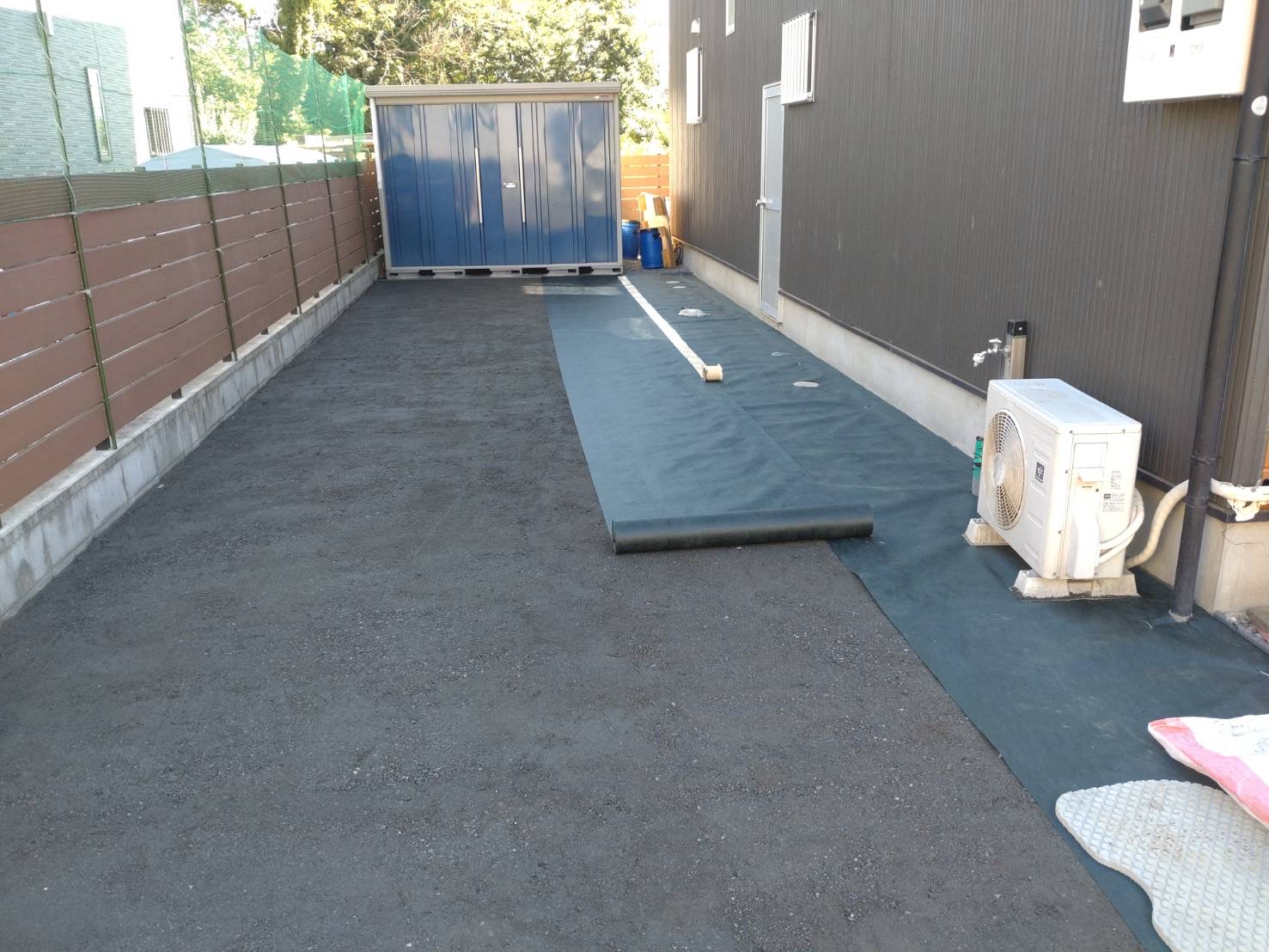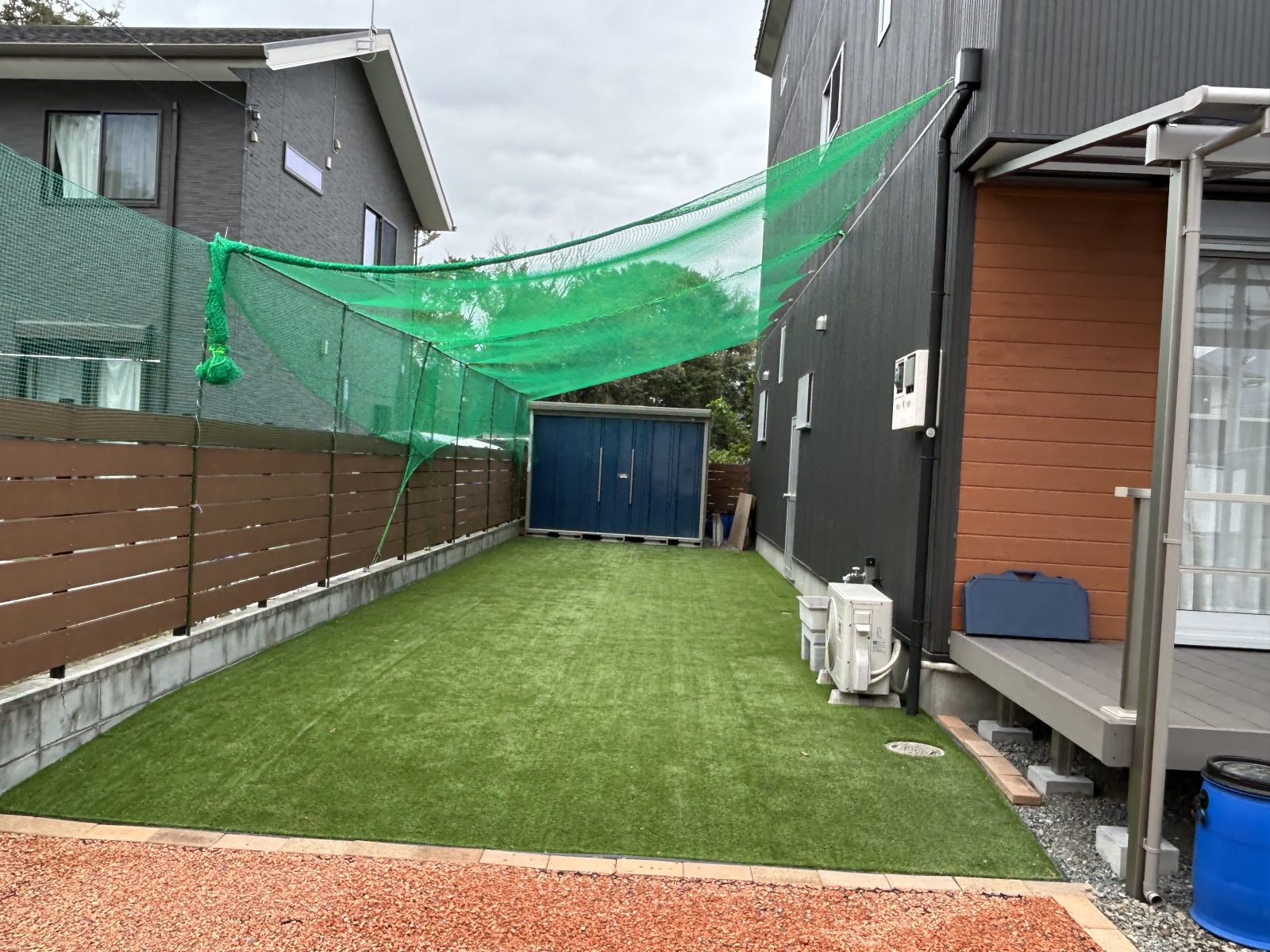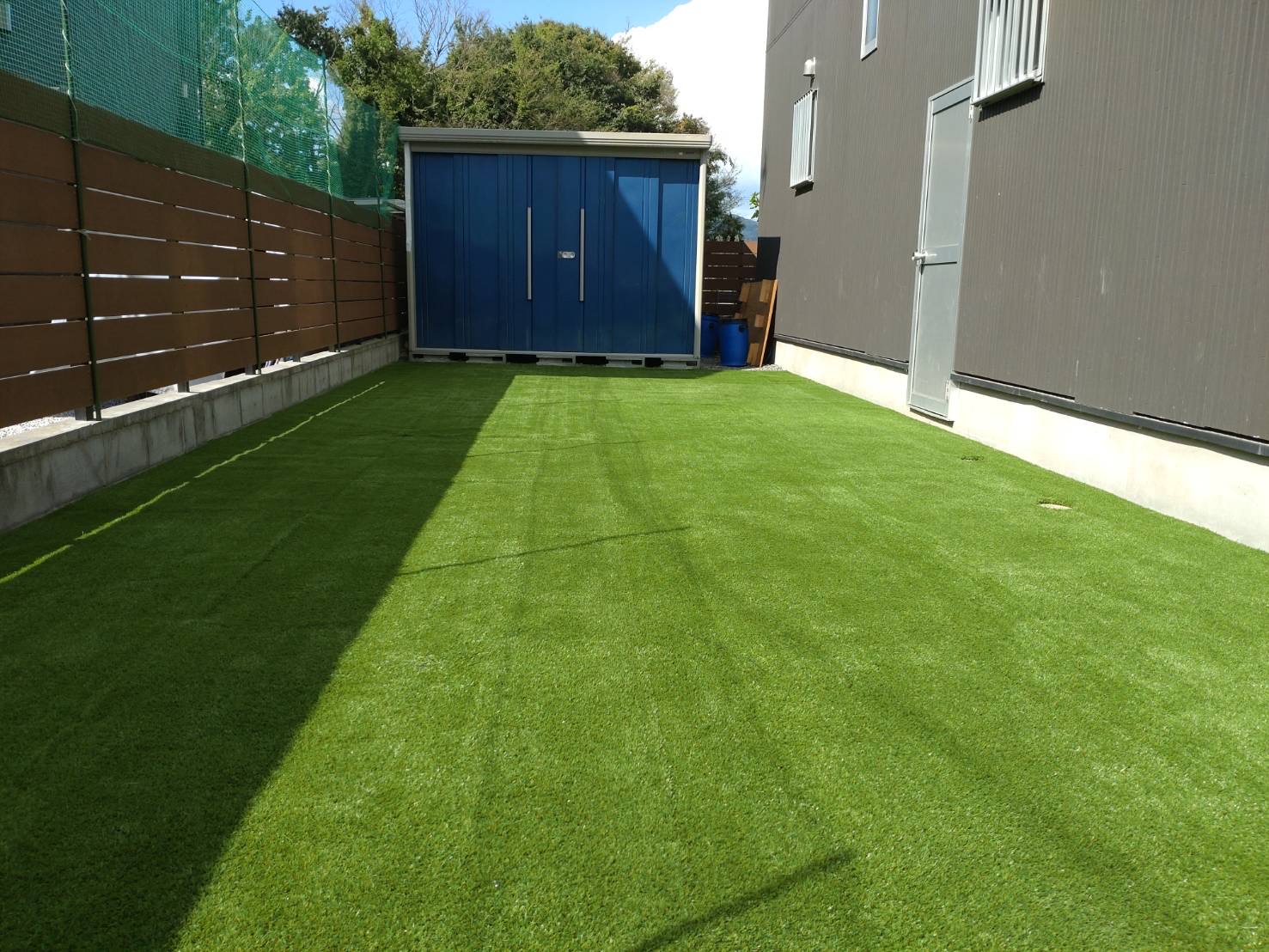 家でも練習できる様にと、庭に人工芝を敷く