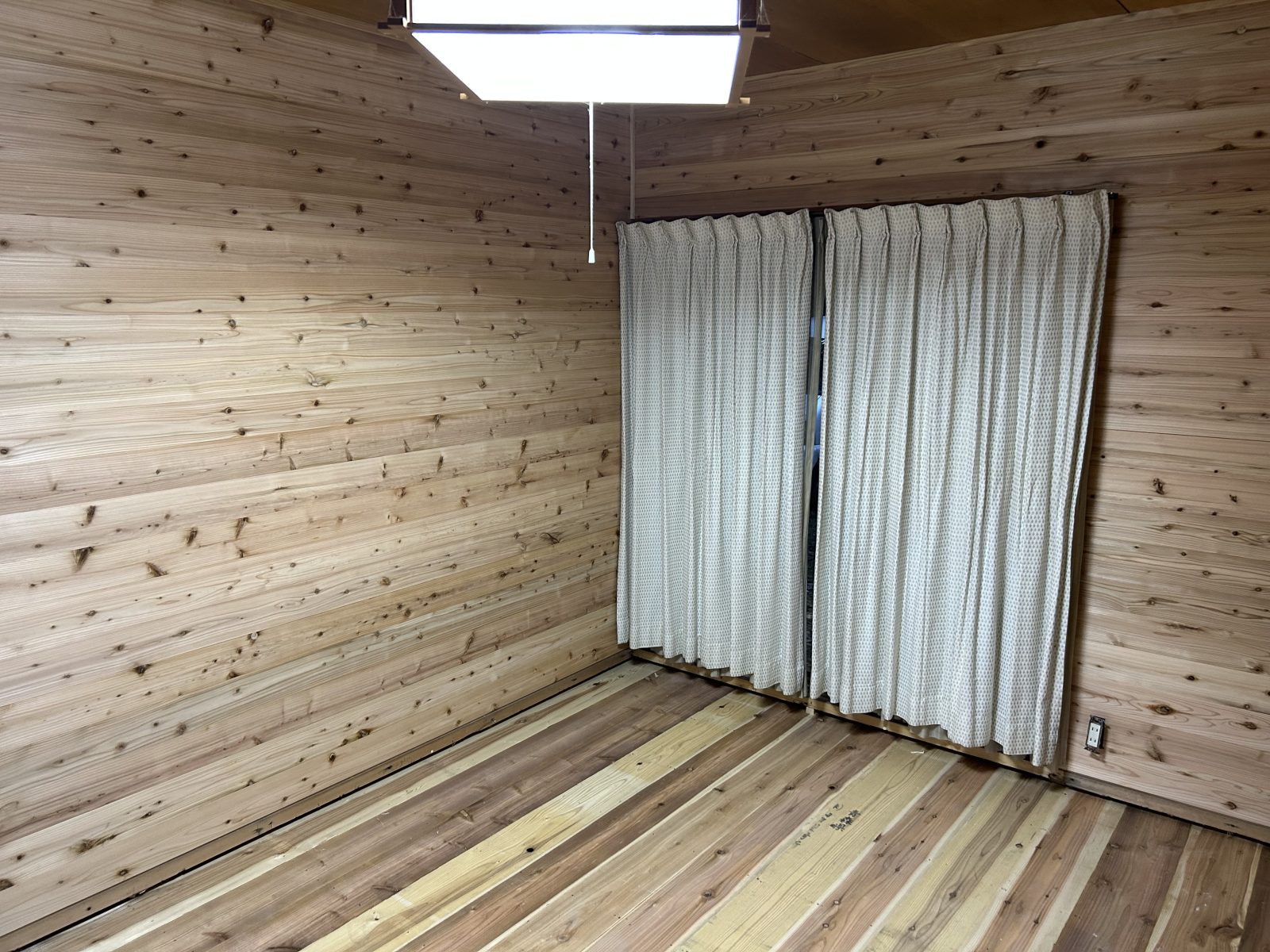 壁も杉板に張り替えました。